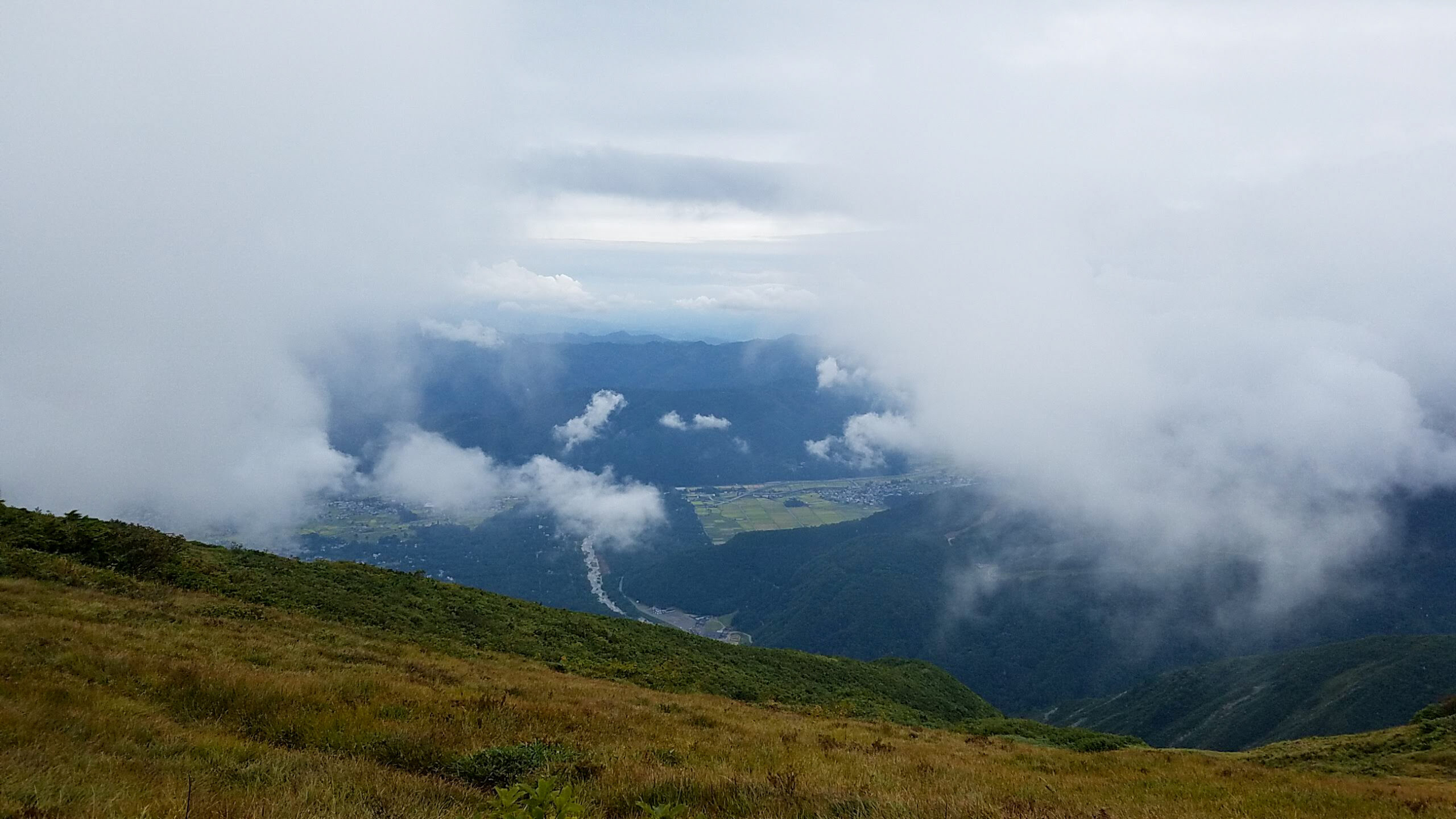 白馬三山を鏡のように映す美しい八方池があり、ゴンドラとリフトを乗り継いで、「八方尾根自然研究路」を1時間半のトレッキングで行くことができる。ということで、私もこの八方池の絶景をみたくて訪れましたが、八方山荘についたところで雨とガスが掛かってしまい八方池まで行くことはできませんでした。ですが、1つのゴンドラと2つのクワッドリフトを乗り継いで行った山腹より見下ろした白馬村の景色はきれいでした。